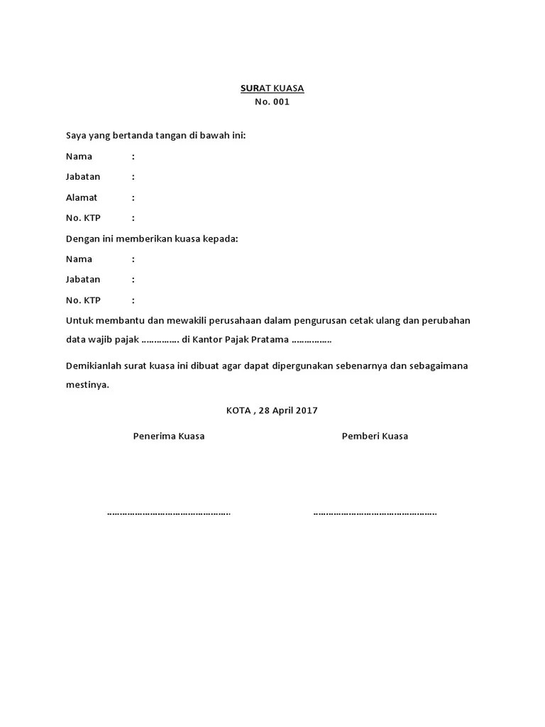 Surat Kuasa Contoh Surat Penunjukan - Contoh surat permohonan peserta LKTI - Ayat (2) huruf a ketentuan pada ayat ini juga berlaku bagi perantara.